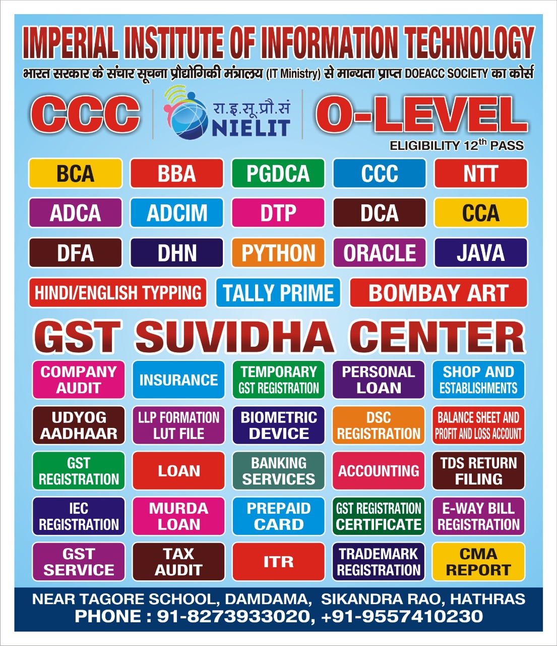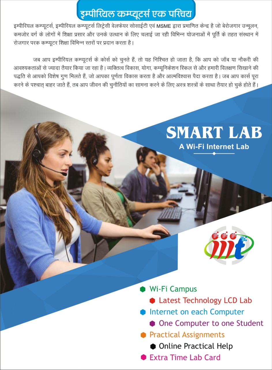 इम्पीरियल कम्प्यूटर्स लिट्रिसी वेलफेयर सोसाईटी एवं MSMS द्वारा प्रमाणित केन्द्र है  || Welcome to Computer Institute
